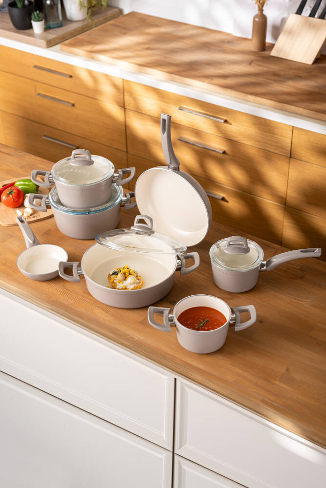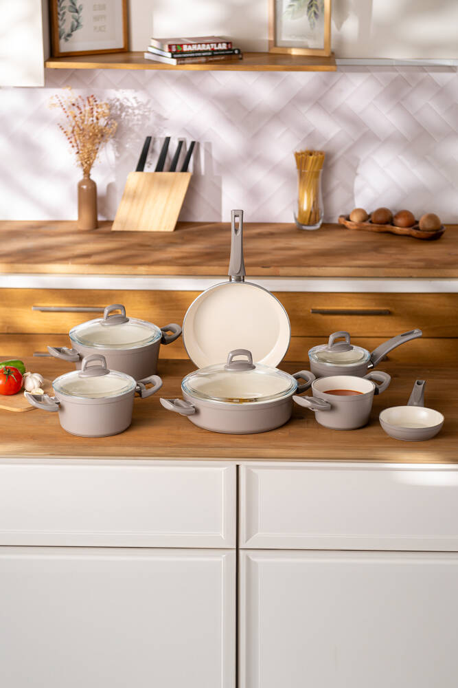 Emsan Crystal 11 Parça Tencere Seti Bej Set İçeriği 18cm Tencere (2,2 lt) 22cm Tencere (3,5 lt) 26 cm Karnıyarık Tencere (3,4 lt) 26 cm Tava (2,2 lt) 14 cm Tencere (1,2 lt) 14 cm Sosluk (1,2 lt) 14 cm Tava (0,4 lt) İndüksiyon Harici Tüm Ocaklarla Uyumludur Connect Prof © tarafından yayınlanmıştır.