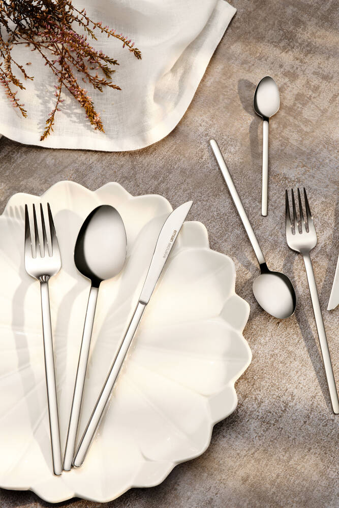 12 kişilik geniş kapasite, aile yemeklerinden özel davetlere kadar her türlü toplantıda ihtiyacınız olan tüm parçalar tek bir sette; Çatal, bıçak ve kaşık olmak üzere üç temel yemek aletini içeren bu set, sofralarınıza şıklık katarken işlevselliği de beraberinde getirir; Paslanmaz çelik materyali sayesinde uzun ömürlü kullanım ve kolay temizlik imkanı sunar; mutfakta hijyenin korunmasına yardımcı olur; Connect Prof © tarafından yayınlanmıştır.