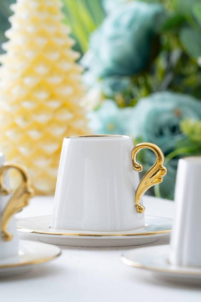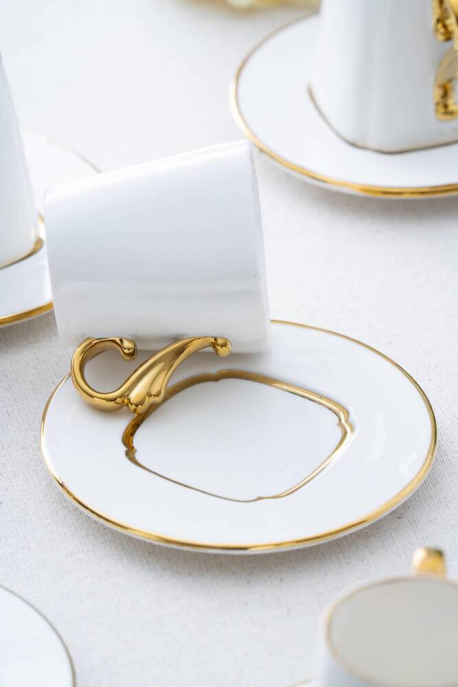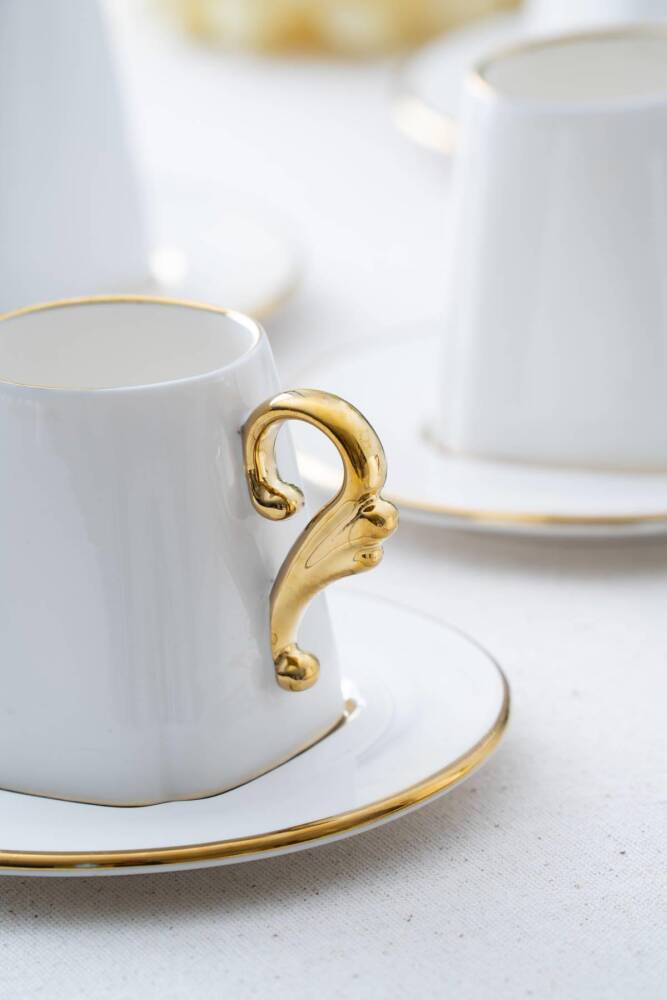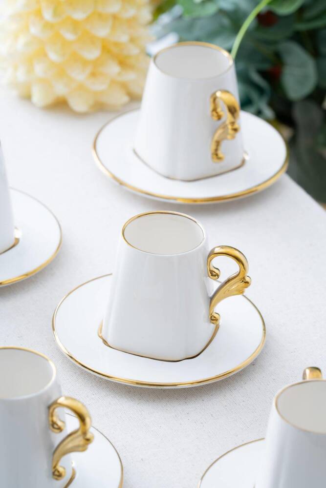 Porselen malzemesi sayesinde uzun ömürlü ve dayanıklı kullanım sunar; Modern tasarımı ile mutfak dekorasyonunuza şık bir dokunuş katar; 6 kişilik set, arkadaşlarınız veya ailenizle keyifli kahve sohbetleri için idealdir; Connect Prof © tarafından yayınlanmıştır.